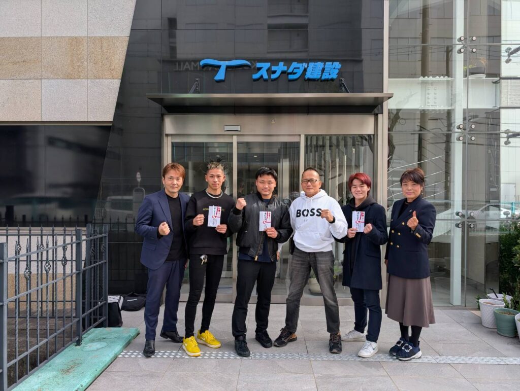 先日にグリーンツダジムを応援いただいている、スナダ建設㈱さんにCRASH出場メンバーでご挨拶に伺わせていただきました! 相談役BOSS砂田様より勝利者賞もいただき選手…
