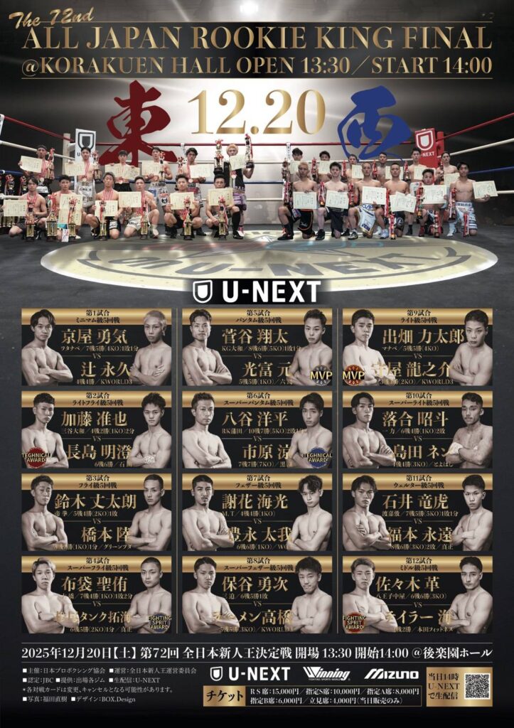 12月20日 土曜日 東京・後楽園ホールにて開催される、2025年度全日本新人王決定戦のポスターが完成しました!